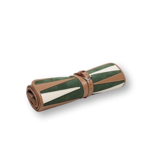 A removable strap of smooth leather allows you to hold everything well rolled.
