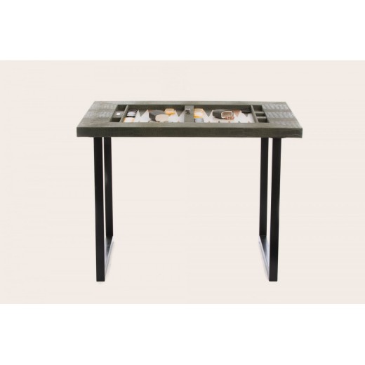 Tavolo backgammon con piedini di metallo a forma di U o x con un vassoio in pelle da 7 cm