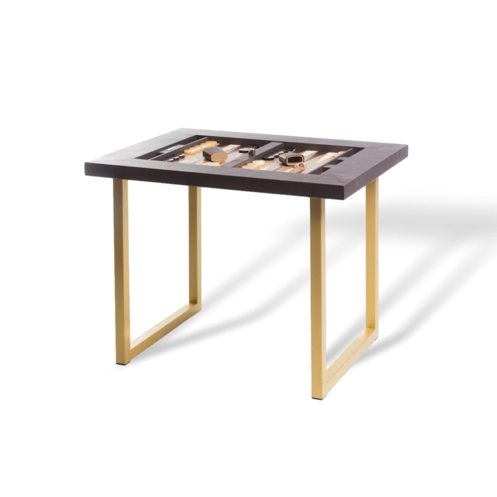 Tavolo backgammon con piedini di metallo a forma di U o x con un vassoio in pelle da 7 cm